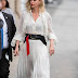 Charlize Theron sai à rua com um elegante vestido transparente.