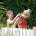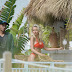 A modelo americana natural da Florida, Alexa Collins escaldante em biquíni apertado vermelho que só lhe elogia o corpo curvilíneo.