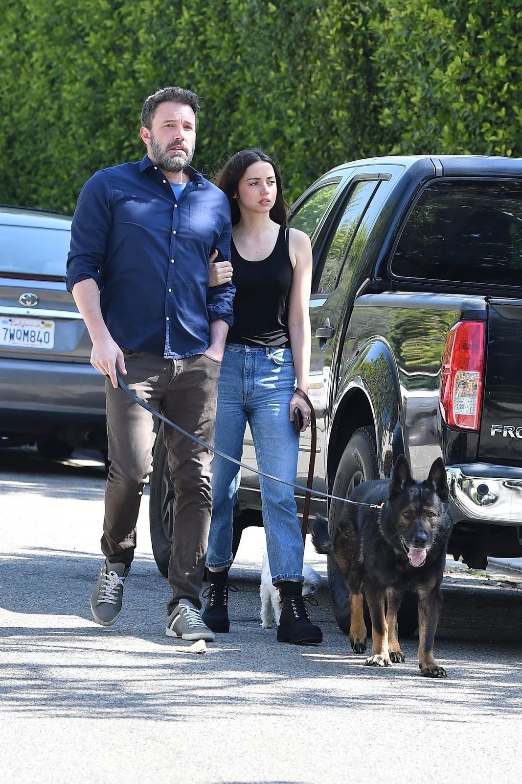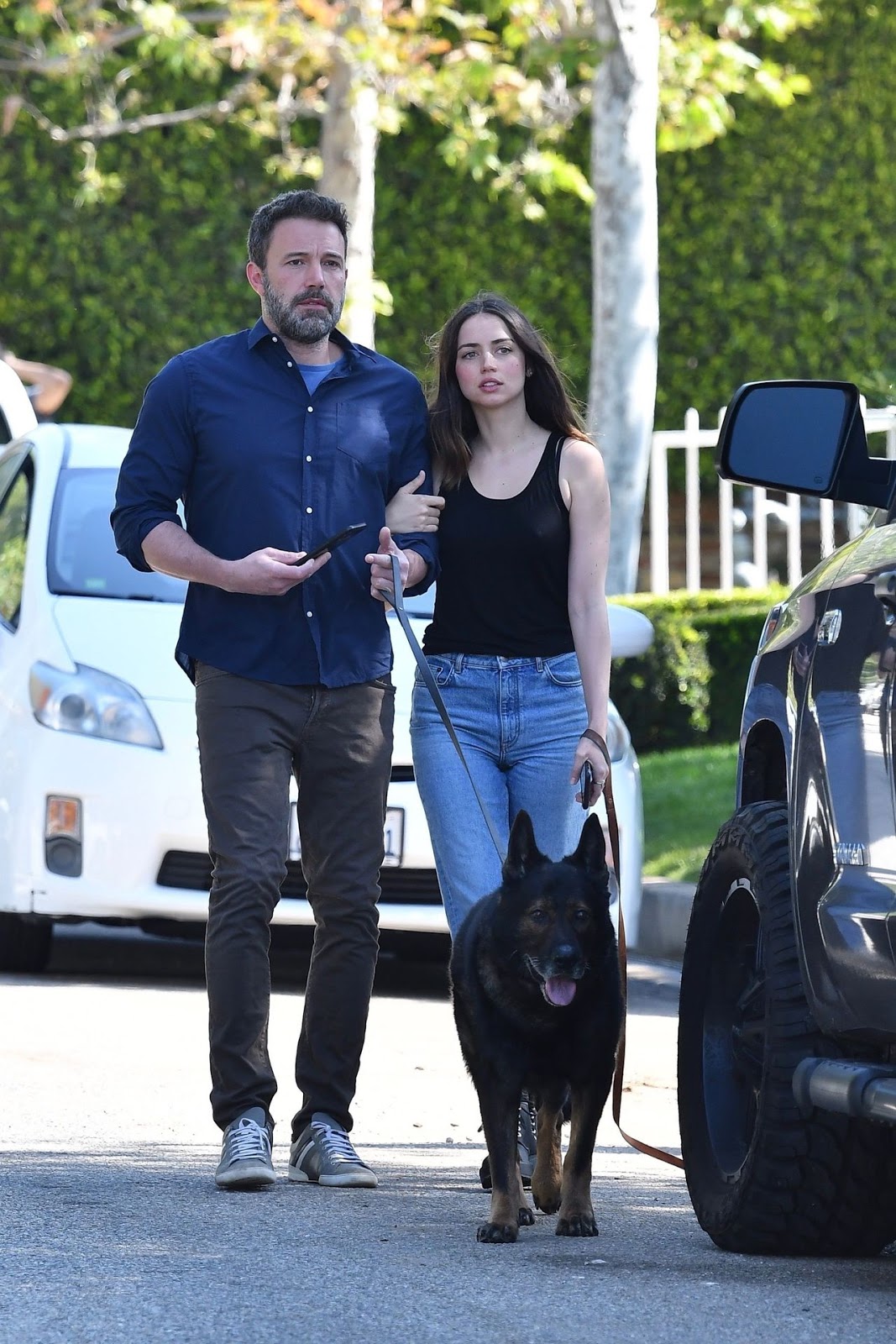 A actriz espanhola Ana de Armas foi apanhada sem soutien com o novo namorado, Ben Affleck, num passeio matinal com os cães.