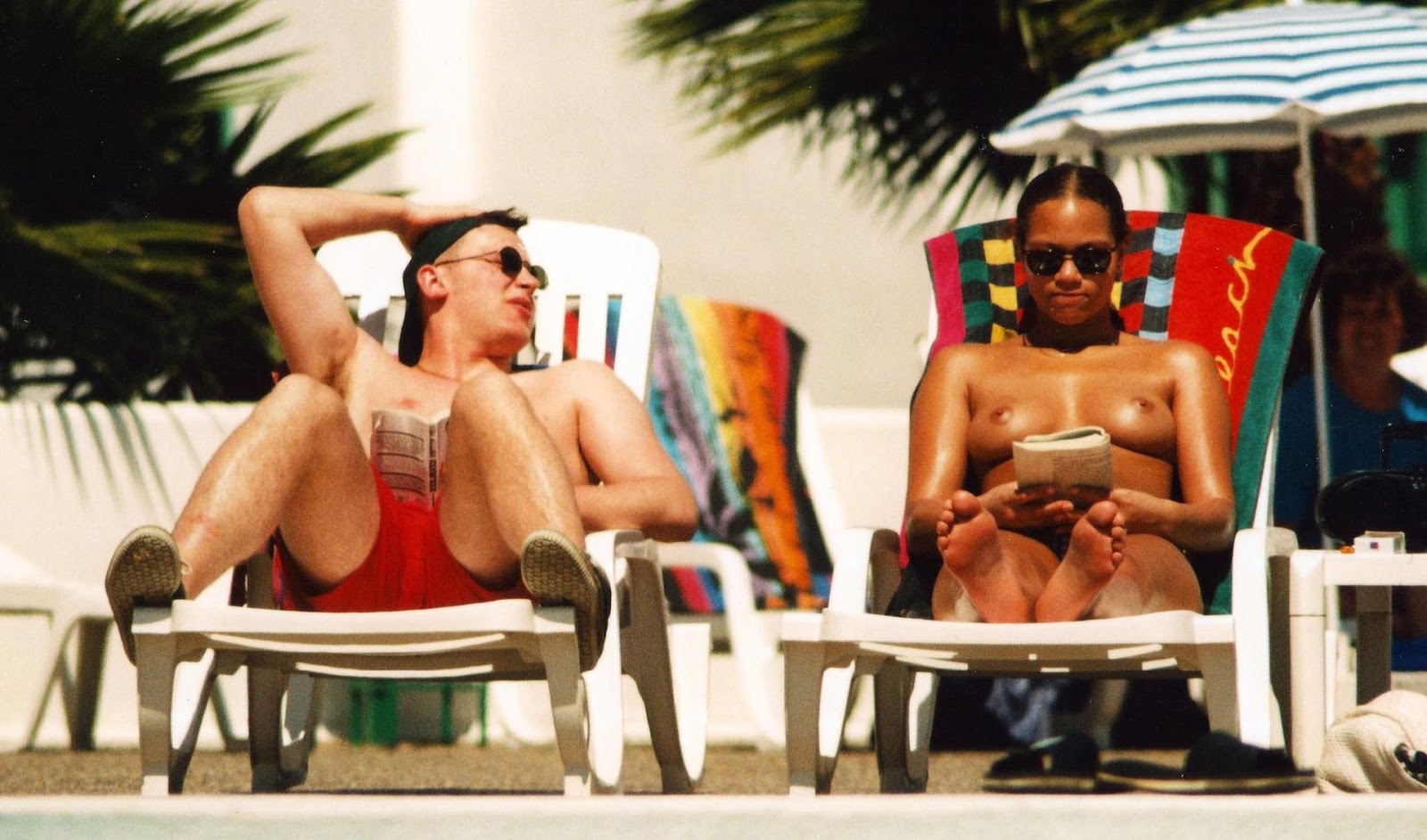 A actriz apresentadora de televisão desde os anos 90, Angela Griffin, aparece topless a apanhar banhos de sol em Espanha com o namorado.