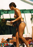 A actriz não é dada a escandalos mas gosta de ter as mamas bronzeadas como o resto do corpo, daí termos acesso a fotos desta beldade em topless.