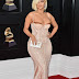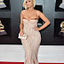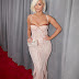 Bebe Rexha aparece num evento com um vestido bem justo dando destaque ao belo decote.