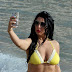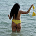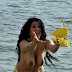 Simone Reed faz topless na praia.