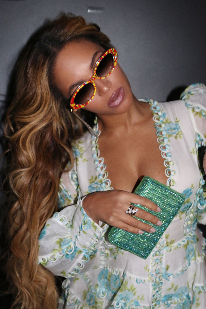 Beyonce mostra-nos o seu belo vestido com destaque para as mamas e pernas bem definidas.