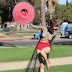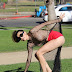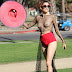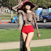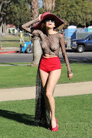 Blanca Blanco passeia pelas ruas de L.A. sem soutien.