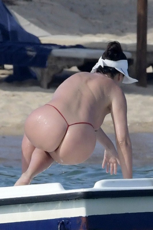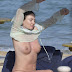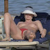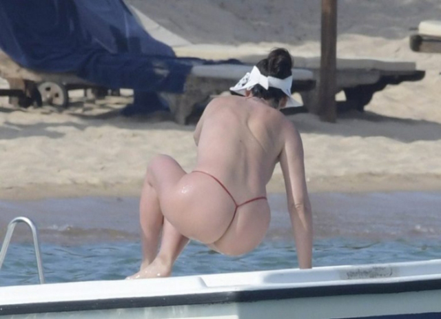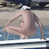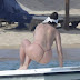 Bleona Qereti mostra nos os seus belos peitos na praia.