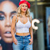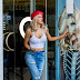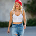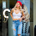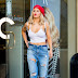 C.J. Perry adota a moda de sair à rua com camisola transparente sem soutien.