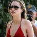 Cara Delevingne de bikini vermelho, nos Barbados.