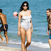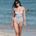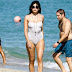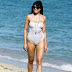 Daisy Lowe a mostrar as suas belas formas em fato de banho na praia.