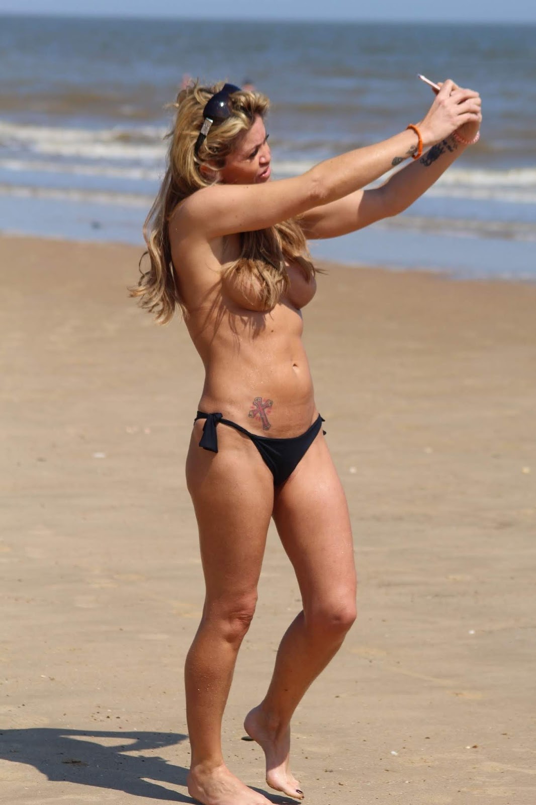 Danniella Westbrook em sessão de selfies com o belo par de mamas bem à vista.