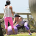 Jennifer Love Hewitt não gostou nada de ser apanhada pelo paparazzi enquanto fazia ioga.