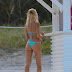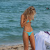 Joy Corrigan faz sessão fotográfica na praia de biquíni bem curto que não esconde nada do seu belo corpo.