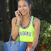 Karrueche Tran, de roupa desportiva e calças bem justas.