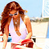 Algumas imagens de Kayla Collins de fato-de-banho, numa sessão fotográfica, na praia.