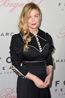 Kirsten Dunst aparece na passadeira vermelha com um vestido que lhe realça o grande peito que tem.