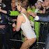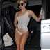 Lady Gaga volta a mostrar que está em forma. Desta vez saiu à rua num fato de banho branco, transparente.