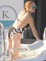 Desta vez foi vista perto de Sardenha, vestindo um fato de banho com um decote quase do tamanho do barco em que se encontrava.