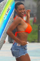Aqui ficam algumas fotos de Montana Fishburne, de bikini laranja um pouco fluorescente.