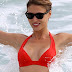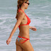 A actriz/modelo Olga Kent passeia-se na praia com um pequeno biquíni vermelho.. eu gosto é do verão..