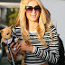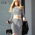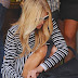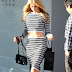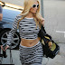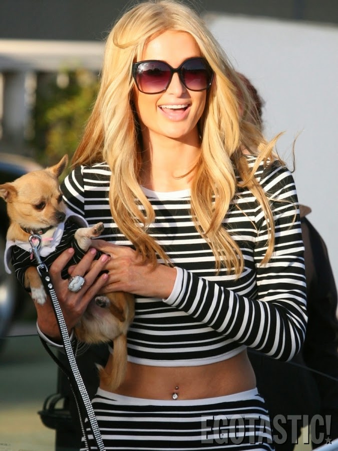Com um top e saia às riscas, e bem justinhos, a Paris Hilton quase que parece uma rapariga normal.