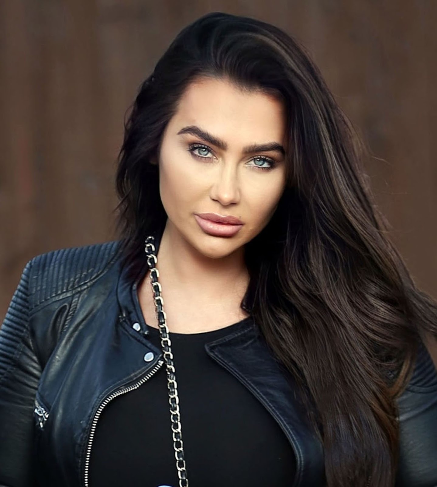 O rabo da personalidade pública inglesa, Lauren Goodger, destaca-se em leggings transparentes pretas justas que lhe acentuam bem as curvas.