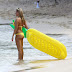 A antiga Miss do Reino Unido, Zara Holland, passeou por Barbados num pequeno biquíni amarelo.